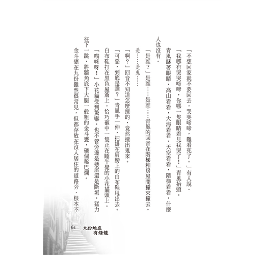 青風興致勃勃地說:「只要妳願意寫這本書,我就告訴妳﹃九份地底有條龍﹄的故事。」