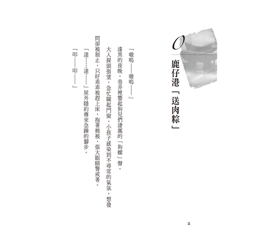大人探頭張望,急忙關起門窗。小孩子感染到不尋常的氣氛,想發問卻被制止,只好乖乖被趕上床,抱著棉被,張大眼睛警戒著。