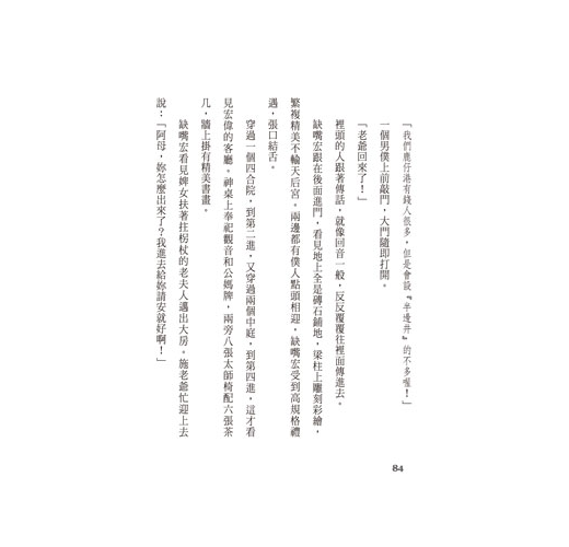 也許在天后宮,會想起缺嘴宏「咿咿喔喔」地乞討和阿泉狂吃白煙的模樣;在意樓的花窗下,會望見傷心的尹娘,絕望地把一幅鴛鴦刺繡猛然剪破;在十宜樓的跑馬廊邊,腦海中會闖進囂張跋扈的黃昇,正粗暴地拉扯李香萍白嫩的小手……至少我自己,已經是這樣了。真的很有趣喔!