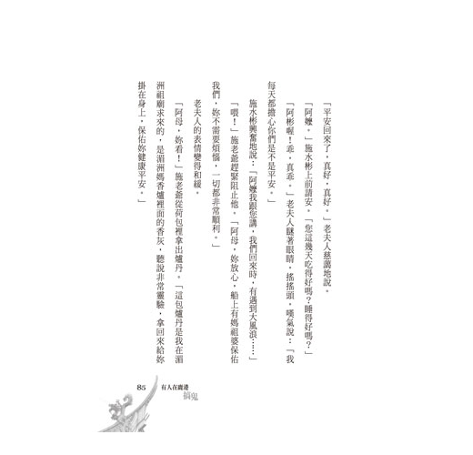 作者的文學寫作技巧及功力令人佩服,讓讀者無形中從人鬼的互動,