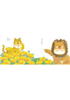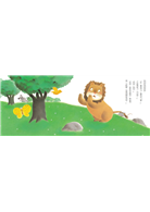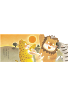 「一、二、三」當獅子張開眼睛時,兔子、斑馬、花豹和老鼠弟弟都不見了。