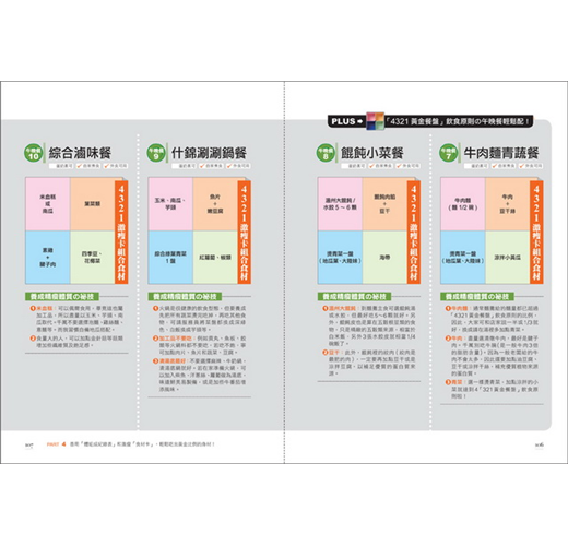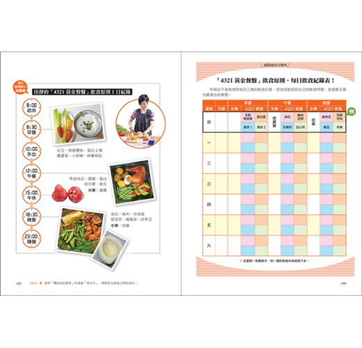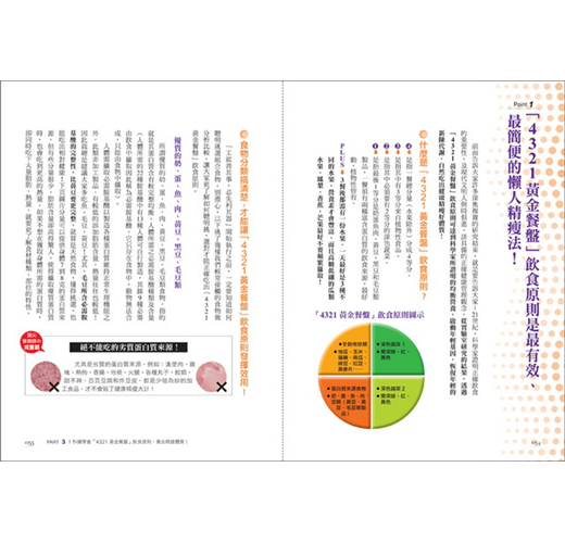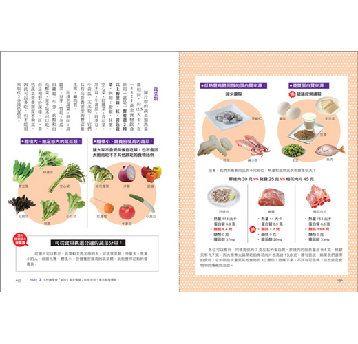 ◎本書作者林佳靜營養師,將複雜的科學理論化為好記又易做的「4321黃金餐盤」飲食原則,