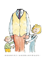 由於十分景仰昆丁‧布雷克的才華,他寫了《爸爸的頭不見了》這個故事,請求他幫忙配圖,昆丁‧布雷克也欣然同意。