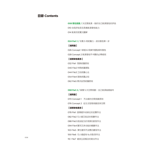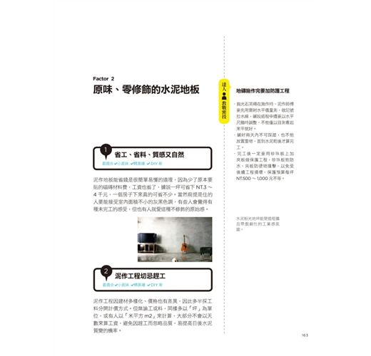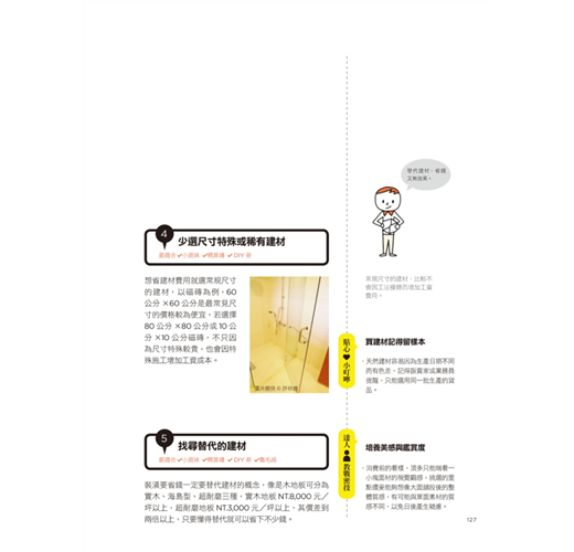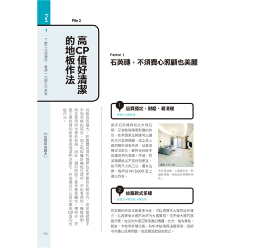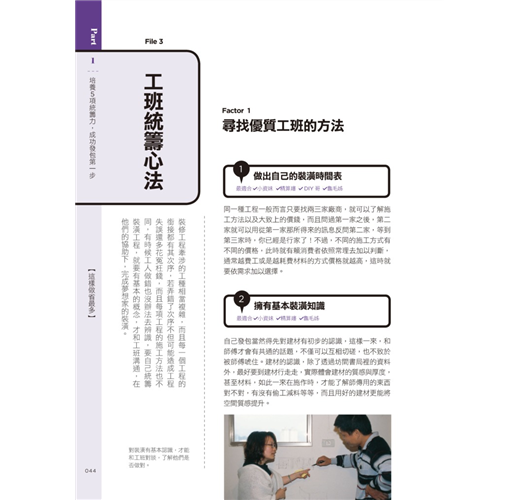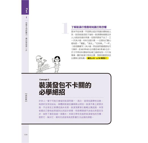 機動性補充裝潢名詞解釋、檢驗表格、發包達人經驗談,令讀者獲得更紮實的裝潢知識。