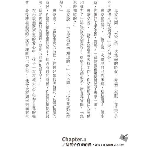 專家接著問:「孩子第一次整理自己的床鋪,整整用了一個小時,你嫌他笨手笨腳,對嗎?」這位母親驚愕得看了專家一眼。