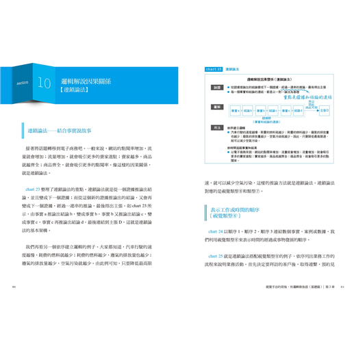 全書收錄68張圖表,每一張都是商業資料的案例,因此,光是隨手翻看,也能接觸到資料製作的架構和技巧。