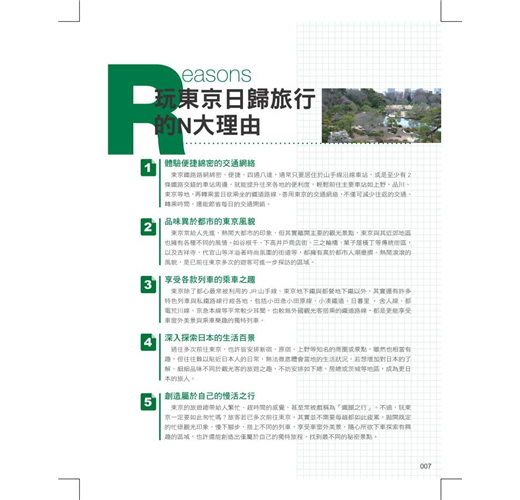 4.精選行程每篇都有前言簡介,告訴讀者本篇重點,TIPS教人購票小撇步,鐵道日歸的走法逐項條列一目瞭然,走訪哪些地點、哪些是人氣焦點,教讀者玩出興味。
