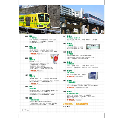 3.精選東京近郊21條當日來回鐵道路線,橫跨神奈川縣、千葉縣、埼玉縣、栃木縣及茨城縣,帶讀者走出東京都23區以外的地方,帶讀者深度認識東京近郊。