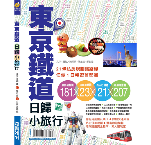 東京鐵道日歸小旅行帶讀者從東京鐵道玩起,再以東京都為中心往關東地方向外擴散,包括神奈川縣、千葉縣、埼玉縣、栃木縣及茨城縣,帶讀者見識與東京截然不同風貌的城市。鐵道在東京首都圈甚至關東來說,是方便又快速的移動方式,我們從認識鐵道交通網開始,用什麼樣的票券搭車最便利,到買票、進站、找月台、怎麼看時刻表、搭對車及轉車、如何看懂站內鐵道資訊、問路到乘車注意事項通通告訴你。