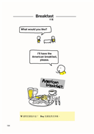 一般人應該都知道,點牛排時,「全熟」的英文是well-done,「五分熟」是medium,那你知道「三分熟」與「七分熟」要怎麼講嗎?大家都知道「蛋」叫做egg,不過當你要吃「炒蛋」、「太陽蛋」、「煎蛋」時,又該怎麼說?本書以圖解方式列出你會想知道的英文表達,即使不想開口,拿本書用手指圖一樣行得通。
