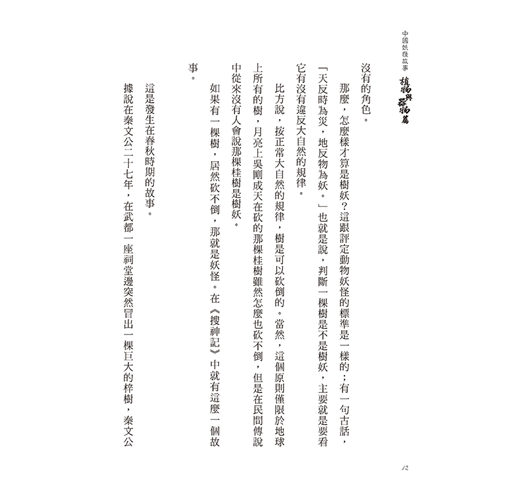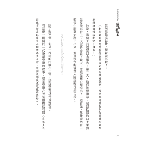 這一套「中國妖怪故事」系列一共分成三本,分別是《中國妖怪故事:動物篇》、《中國妖怪故事:植物與器物篇》以及《中國妖怪故事:雜怪篇》,取材自《搜神記》、《太平廣記》、《醉茶志怪》、《子不語》、《續子不語》、《南皋筆記》、《廣群芳譜》、《幽明錄》、《淞隱漫錄》、《二刻拍案驚奇》等,我們用說故事的方式,把中國妖怪故事做了一個系統化的整理以及說明,不過對於故事本身都做了一些處理,在保留原來的情節架構之餘,有的是在文字上更淺白些,有的是在敘述上希望能夠更生動些,有的是把其中嚴重的漏洞稍做補強,當然,更多的改編還是為了處理成適合讓小朋友以及青少年朋友閱讀。希望大家喜歡。