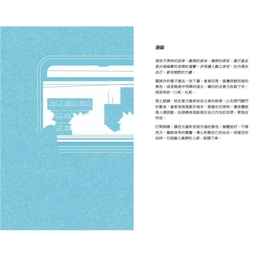 這本輕鬆舒服的小書,不闡述正念深邃的道理,只是輕切的帶大家回到日常生活,從每天會碰到的情境開始,觀察生活週遭的細微小事,一點一滴喚醒被遺忘的感官知覺,找回自己,也找回觀照萬事萬物的能力。全書簡單易懂,可隨身攜帶,也可以放在床頭,時時翻閱,舒緩自在。