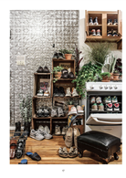 在紐約所居住的公寓,一樣運用巧手改造,木箱與烤箱成了鞋櫃,並點綴葉形各不相同的觀葉植物;隨意掛著或擺放的帆布袋,成了方便移動的套盆,不管放入盆栽或乾燥花都相得益彰。隨身的飾品如眼鏡、手環、領巾等,當成點綴的小物放在門邊,出門時也更容易挑選了!房間的各處盡是川本 諭最喜歡的綠意,搭配美式風格的雜貨與公寓風格,更激盪出不一樣的火花!
