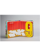和版面一樣大的數字,透過鏤空的空隙,讓孩子猜猜數字的背後是什麼。數字前後兩個跨頁的圖像,互有因果關係,數數變成可以在生活中激發創意的遊戲。所以當孩子跟著《數字方塊書》從1數到100後,自己會從生活中,找到更多有趣的點子。