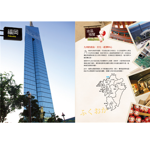從福岡、北九州、佐賀縣、長崎、別府到熊本和鹿兒島,13個地區介紹加上250個必踩景點與特產美食,還有簡單切要的Travel Tip,景點順遊路線、地獄溫泉共通套票、日本三大中國城導覽、行李保管配送服務、列車利用方式……讓行程精彩加倍!