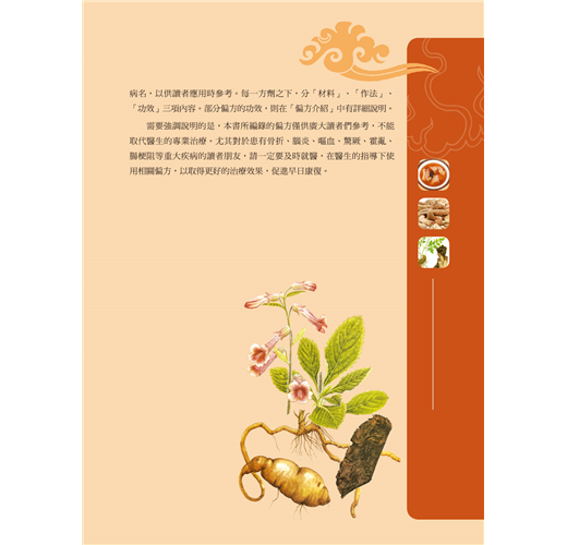 九、簡便易行老偏方,迅速緩解急症病痛:從常見症引入,完整呈現各個簡易偏方的材料、作法、功效以及部分偏方的性味歸經、功效與主治症狀,讓讀者一目了然,在最短時間內,正確掌握使用老偏方。