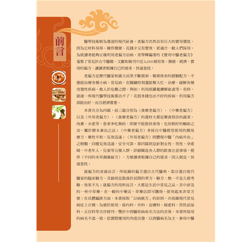 中醫治未病、重養生,對症未必用藥,本書秉持每個人都能輕鬆做好養生的原則,選出了適合慢性病與疑難雜症的患者在家自我治療的老偏方,讓你輕鬆實踐不傷身。