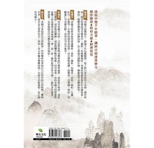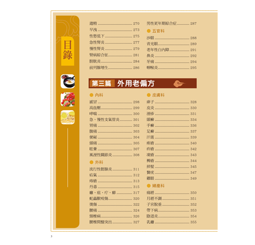 八、養生保健靠自己,跟大病小病說bye bye:遠離風寒暑溼燥熱入侵,家庭常備簡便速效老偏方,隨手防治,免去針藥之苦,又能擁有健康生活。