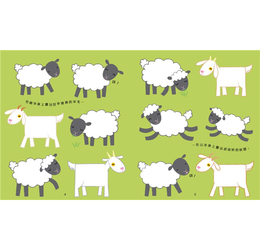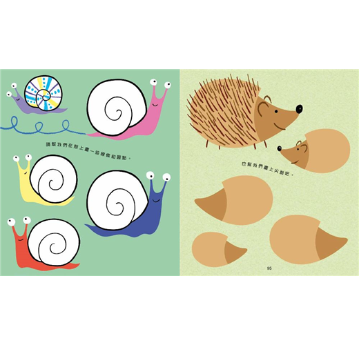 幫七彩毛毛蟲添上手腳,為光禿禿的綿羊蓋上好多捲捲的羊毛,