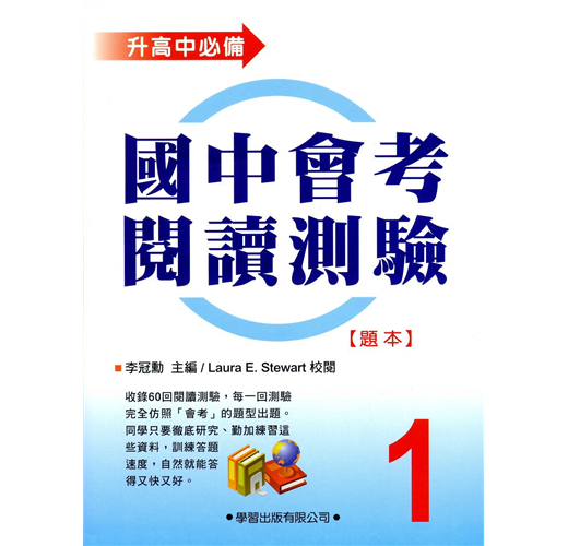 (1)準備會考,一定要多做題目,本書共有60回閱讀測驗,題型完全仿照會考,確實做完本書,認真檢討答案,會考就能考高分。