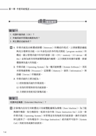 此外,並輔以相關的範例與題型使學生們更能瞭解重點與基本觀念之所在,不再 有研讀許久卻摸不著頭緒或不知重點為何的困惑。於編寫此書時也深深體認到 『書不在於厚,有重點才行;字不在於多,有意義就行。