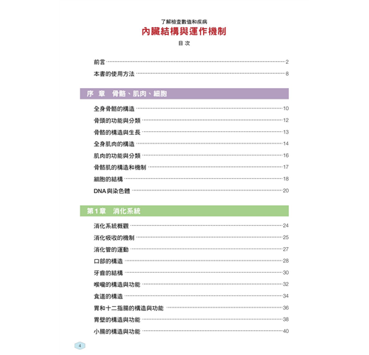 作者致力以簡明易懂的方式解析複雜的內臟運作機能,一般讀者可透過詳盡的圖像了解身體構造,拿書中收錄的疾病判定數值比對自己的健檢報告,靠自己釐清目前的健康狀況,也適合中、西醫療從業人員用於臨床實務。