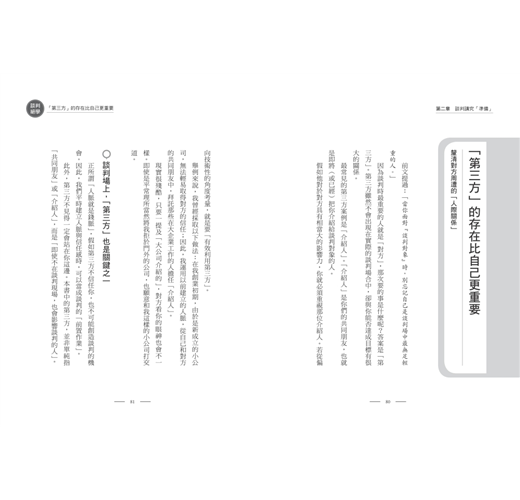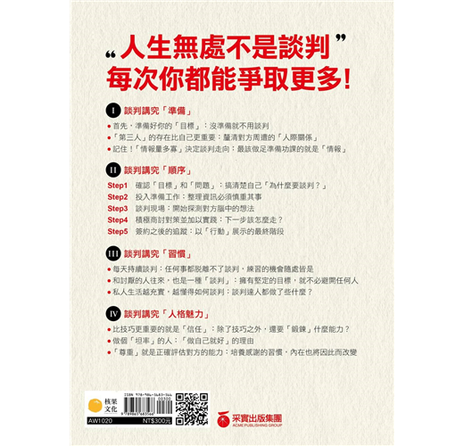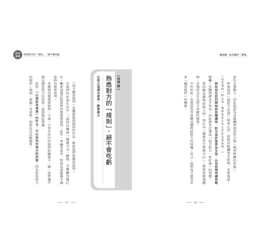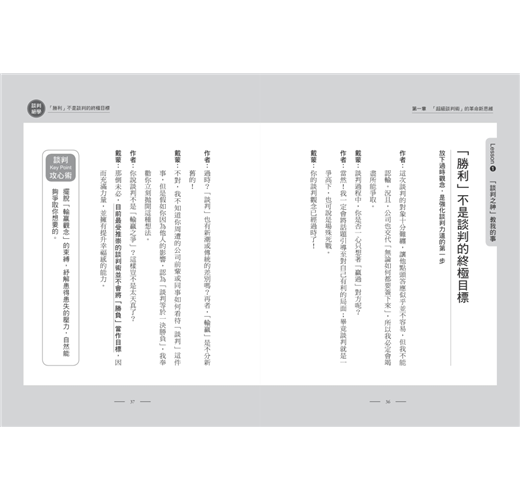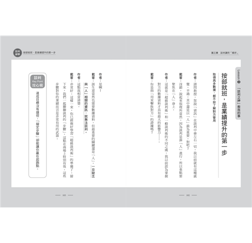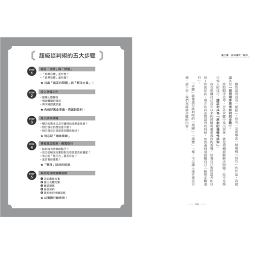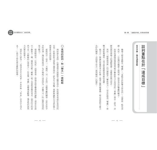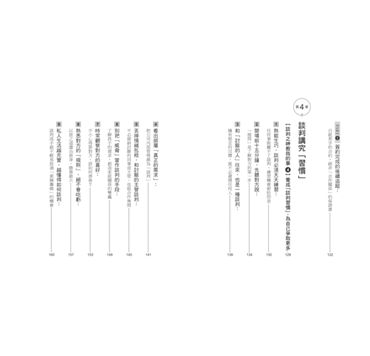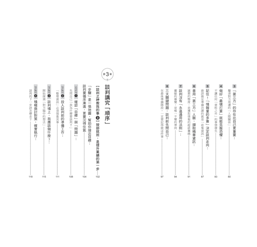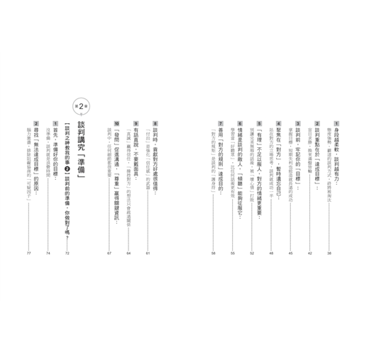 1.章節條理清晰,內容循序漸進,幫助讀者精準掌握談判要領。