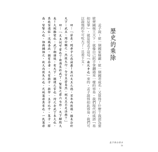◎從公孫丑提的為政問題談起,內容牽涉到中華文化諸多問題。