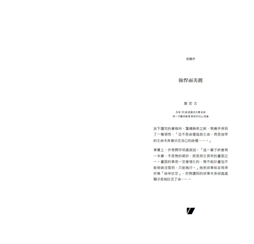 放下讀完的書稿時,驚嘆稱奇之餘,我幾乎得到了一種領悟,「並不是命運造就生命,而是強悍的生命本身會決定自己的命運……。」