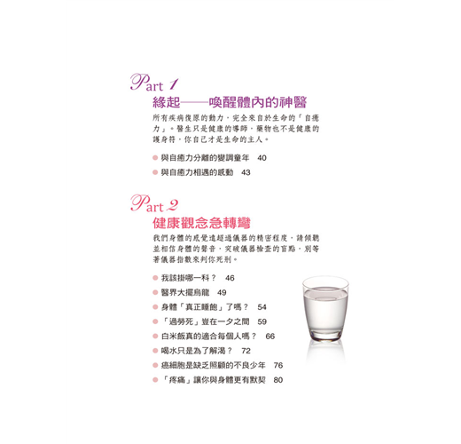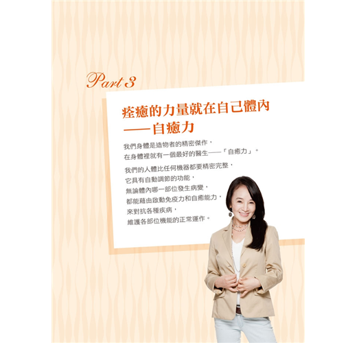 我們的人體比任何機器都要精密完整,它具有自動調節的功能,無論體內哪一部位發生病變,都能藉由啟動我們的免疫力和自然治癒能力,來對抗各種疾病、維護各部位機能的正常運作。