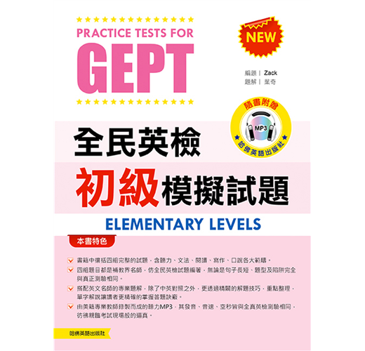 •四組題目都是補教界名師,仿全民英檢試題編著,無論是句子長短、題型及陷阱完全與真正測驗相同。