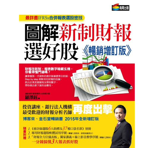 承蒙財經書籍市場與讀者們的廣大回響,本書第一版廣獲各界指教,繼而有此改版的誕生。第一版撰寫之時,台灣才剛導入IFRSs,有些公報內容已經落實,有些公報要等一、兩年才實施。相較於過去GAAP不同的財報新樣貌,於第一版時尚無緣跟各位讀者見面,因此,此次改版增加了104年新版的綜合損益表範例(其他綜合損益區分為二大類)。此外,投資性不動產後續評價採用「公允價值模式」,於103年1月1日已經實施,對於財務報表上有投資性不動產的各產業,未來影響將十分重大,本書也挑選具有代表性的範例在書中討論。除了正冊的修改,此次也加贈了更為實務面的別冊,我在別冊中分享自己選股的六大指