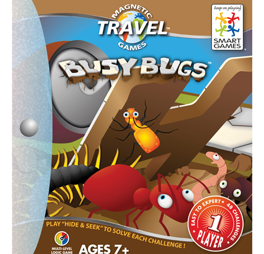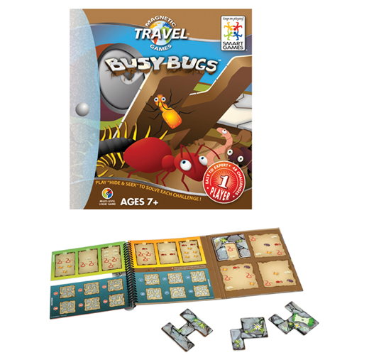 「魔磁隨身遊戲-蟲蟲捉迷藏」設計了石塊下的蟲蟲生態情境,要進行一場充滿趣味的躲藏遊戲。可以配合遊戲關卡,翻轉擺放4個石塊來讓小昆蟲躲藏。遊戲變身為精巧方便攜帶的魔磁隨身本,每個石塊都富有磁力,方便遊戲操作。設計精巧的翻卡式闖關圖卡,設計了48種由淺而深的遊戲關卡。遊戲同時,增進手腦協調與幾何空間的智能發展。