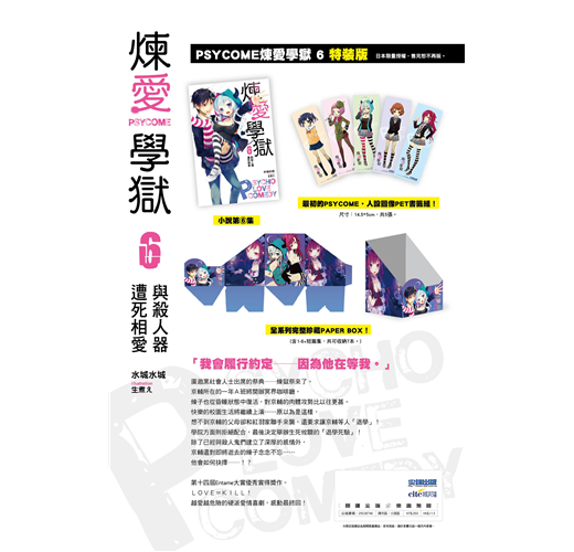 相關著作:《PSYCOME煉愛學獄(01) 與殺人鬼共度死春期》《PSYCOME煉愛學獄(02) 殺人姬與林監學校》《PSYCOME煉愛學獄(03) 殺人希與期末死驗》《PSYCOME煉愛學獄(03)【特裝版】殺人希與期末死驗》《PSYCOME煉愛學獄(04) 與殺人忌共度裡盆會》《PSYCOME煉愛學獄(05) 與殺人機共度體育災》《PSYCOME煉愛學獄(06)與殺人器遭死相愛》