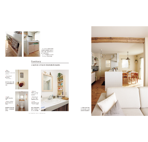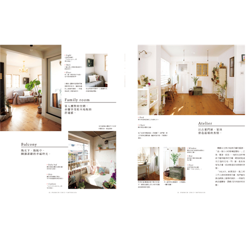 舉凡以古董配件與老舊材料營造亮點、打造洗練鄉村風格的手法,或者以矽藻土處理牆面,來營造沉靜氛圍的方式,在同屬海島且地窄人稠的台灣,都是充滿啟發性、能夠被現學現用的實用提案。除此之外,本書還蒐集大量具有畫龍點睛奇效的素材運用術,比方以枕木做為門柱、使用黃銅製成的二手單品,或以琺瑯、木材、玻璃襯托雜貨素材感的室內空間,甚至採用批刀痕,使灰泥牆面的表情變得豐富,這些專家級的手法,無論運用在舊屋翻新或者新書裝潢上,都能在不花大錢的前提下,輕鬆打造適合一家人共同生活,舒適又自在的風格空間。
