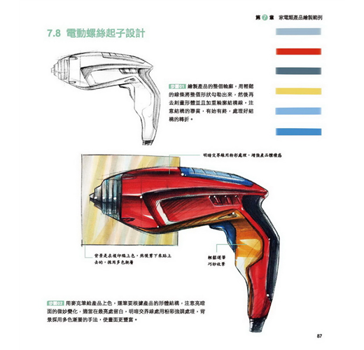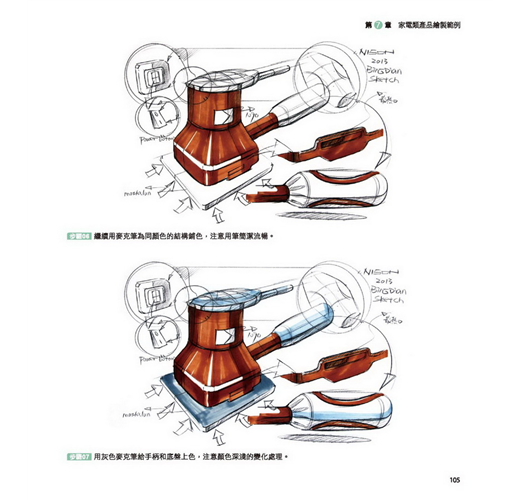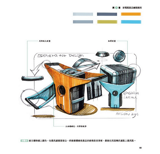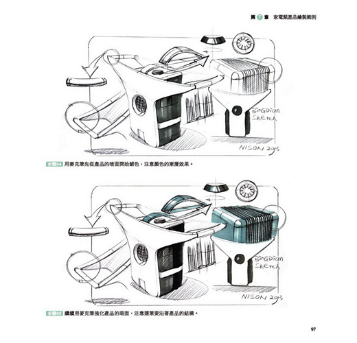 手繪作為一種傳統的表現技法,一直沿用至今,即使在Photoshop、 Rhino、3ds Max等軟體日新月異的今天,它也一直保持著自己獨特的優勢和地位,並以其強烈的藝術感染力,向人們傳遞著設計師的創作理念和情感。在追求形式完美、提高藝術修養、強化設計語言的同時,設計師也越來越青睞於手繪表現。