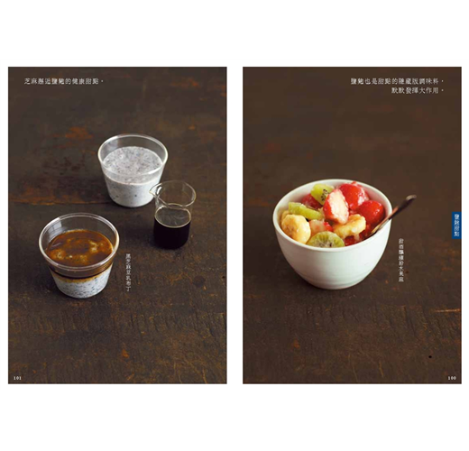 鹽麴西班牙燉飯、鹽麴漢堡、香菇茄子味噌醬管麵、鹽麴韭菜炒蛋、醬油漬白蘿蔔、馬鈴薯洋蔥湯、常夜鍋、鹽麴拌鮪魚酪梨、黑芝麻豆乳布丁……
