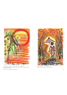 陳持平從不輕視這「好像沒什麼難度」的畫具,相反的,他很享受並善用這信手捻來、隨時可畫的趣味。他能在閱讀書報雜誌、攝影及旅遊叢書時擷取靈感,也可以在街頭巷尾看見某個場景,立刻在心裡勾勒出初稿;也可以將心中對宗教、生命的熱愛,活靈活現地躍於紙上……一盒蠟筆,一張隨手取得的A4圖畫紙,就開始了陳持平的「快意人生」。