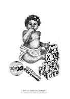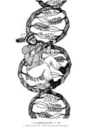 在這張插畫中,嬰兒由點所構成,他坐著,身邊環繞著染色體的資訊,這些資訊讓他能夠藉著基因調節而成長。他快樂玩著玩具,也許腦海中正開始出現沒經過編碼的想法呢。