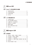 講解core模組的一些進階知識,如操作影像中的像素、影像混合、分離顏色色版、調整影像的對比度和亮度、進行離散傅立葉變換,以及輸入、輸出XML和YAML檔。