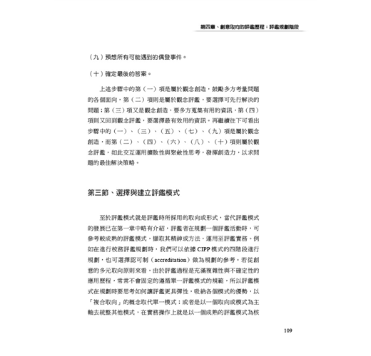 本章就先探討創意取向的評鑑規劃階段,而評鑑實施及結果階段的內容則留到下二章再行說明。