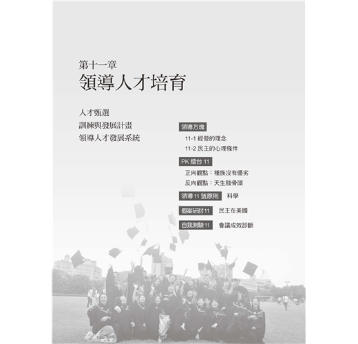 本書闢有「領導方塊」,深入淺出的闡述24個領導相關概念,幫助讀者提升對領導學的全面認識;其次,針對領導學12個經典議題,提供正反面不同觀點,引導讀者進行反思批判;實務應用上,提出融會中西的領導12個原則,做為讀者實務應用的領導心法;最後,分張規劃「個案研討」以及「自我測驗」的橋段,提供大學師生上課討論的題材。