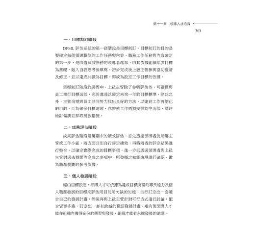 4.歷練(empowerment):歷練是指給予培育人才領導職位。歷練和發展相互聯結,領導人才因為工作上的承擔,可以從工作磨練中領悟智慧,並因逐級晋升而有更多領導才能的磨練機會。領導人才透過歷練,從不斷的問題解決過程中學習,能夠使自己的能力持續強化。與此同時,歷練也是考查能否更上層樓的重要指標,職位晋升應著眼於未來工作角色的扮演潛力。