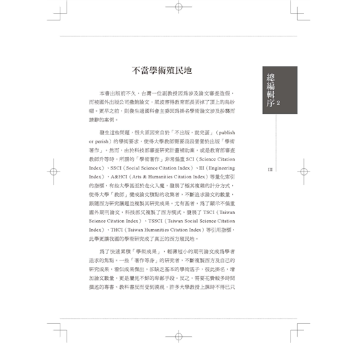 本書出版前不久,台灣一位副教授因為涉及論文審查造假,而被國外出版公司撤銷論文,風波害得教育部長丟掉了頂上的烏紗帽。更早之前,則發生過國科會主委因為掛名學術論文涉及抄襲而請辭的案例。