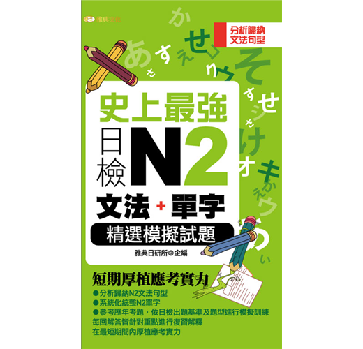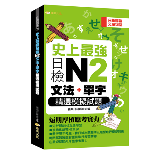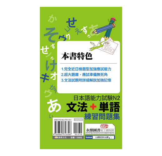 為了增加學習者的實戰經驗,本書依循JLPT所制定之基準及相關概要,以和JLPT類似的考試形式,設計文法及單字的模疑試題,希望學習者在練習之中能熟悉JLPT的出題傾向及作答方式。