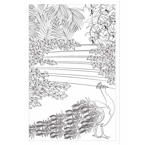 在色彩學的理論中,黑色與白色都是屬於無彩色的色相,僅有明度的區別。白色可以營造出空間感,具有一致性與協調的氣氛,因此也有聖潔、純真、儀式的象徵意義。在著色畫本中,您可以將一些空間留白,讓畫面沒有太重的壓迫感,並增加思緒馳騁的空間。不過,白色會產生一種空洞感,因此使用量必須仔細拿捏。