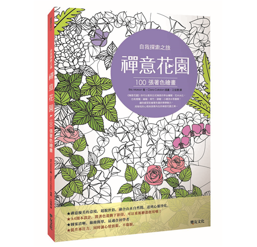 《禪意花園》透過彩繪著色畫,來場神遊之旅,進入充滿智慧、寧靜與祥和的境界,自由靈活,沒有過多理論探討,帶你探索內心的平靜之路,感受禪宗園藝的山水風景,融入自然,尋覓超脫都市的真性情。