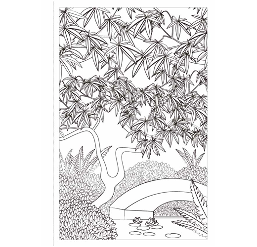《禪意花園》你可以看到日式禪意的亭台樓閣、花木水石,也有燈籠、蝴蝶、青竹、錦鯉、小橋流水等圖案,讓你感受彩繪著色畫的寧靜魅力,用愉悅的心情來探索內在的禪意花園之美。