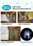 書中附有4張拉頁剪紙圖,運用美工刀即可完成,放在燈光下製造光影更美哦!