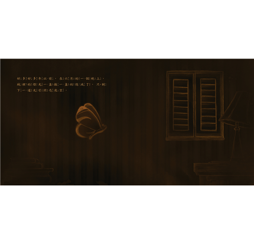 好多好多年以前,在六月的一個晚上,城裡的燈光一盞接一盞的熄滅了。只剩下一道光芒照亮夜空。那是月亮,發出瑩潔的光。她的光照進一扇打開的窗,捕獲了寂寞男孩的心。